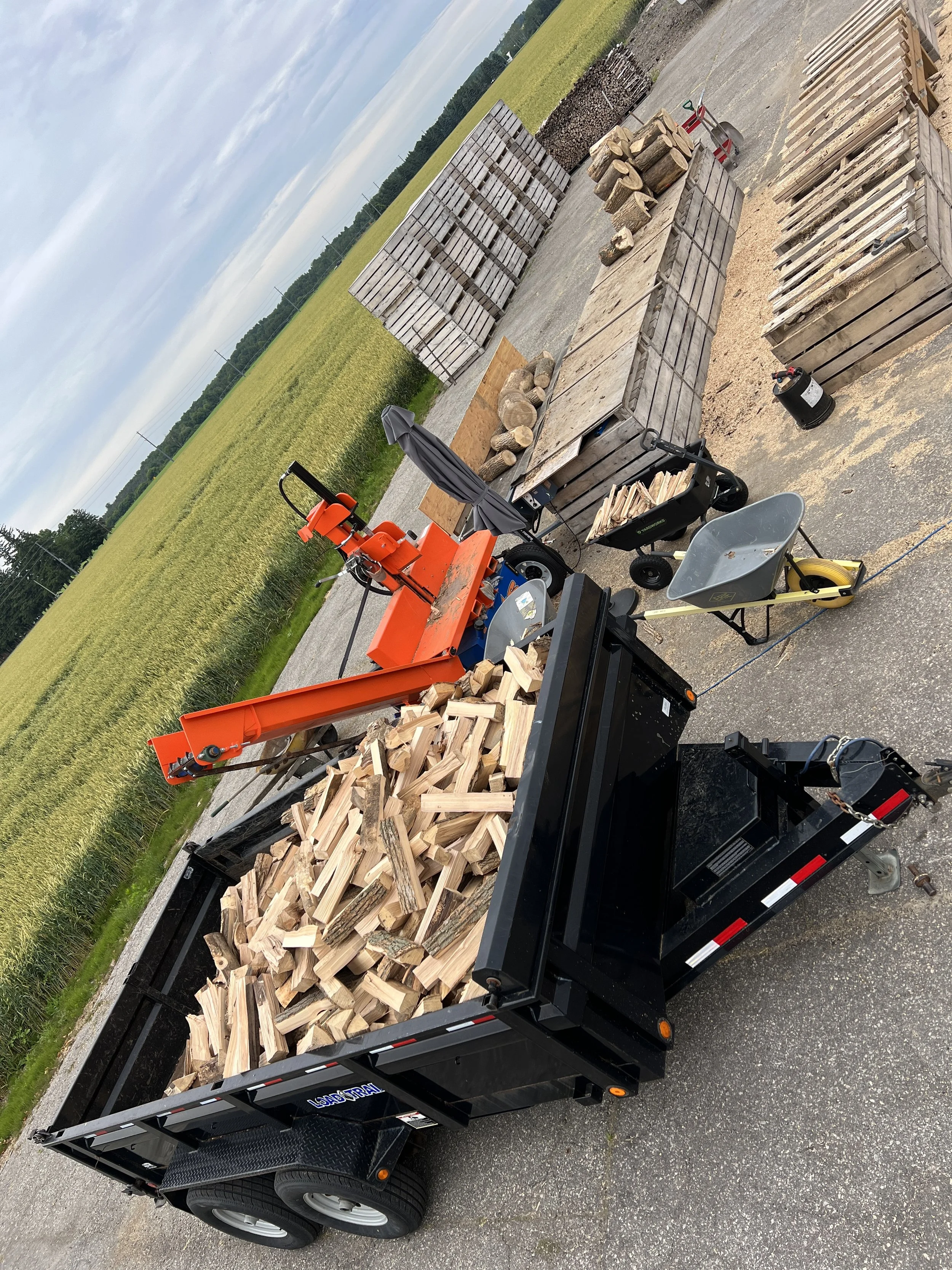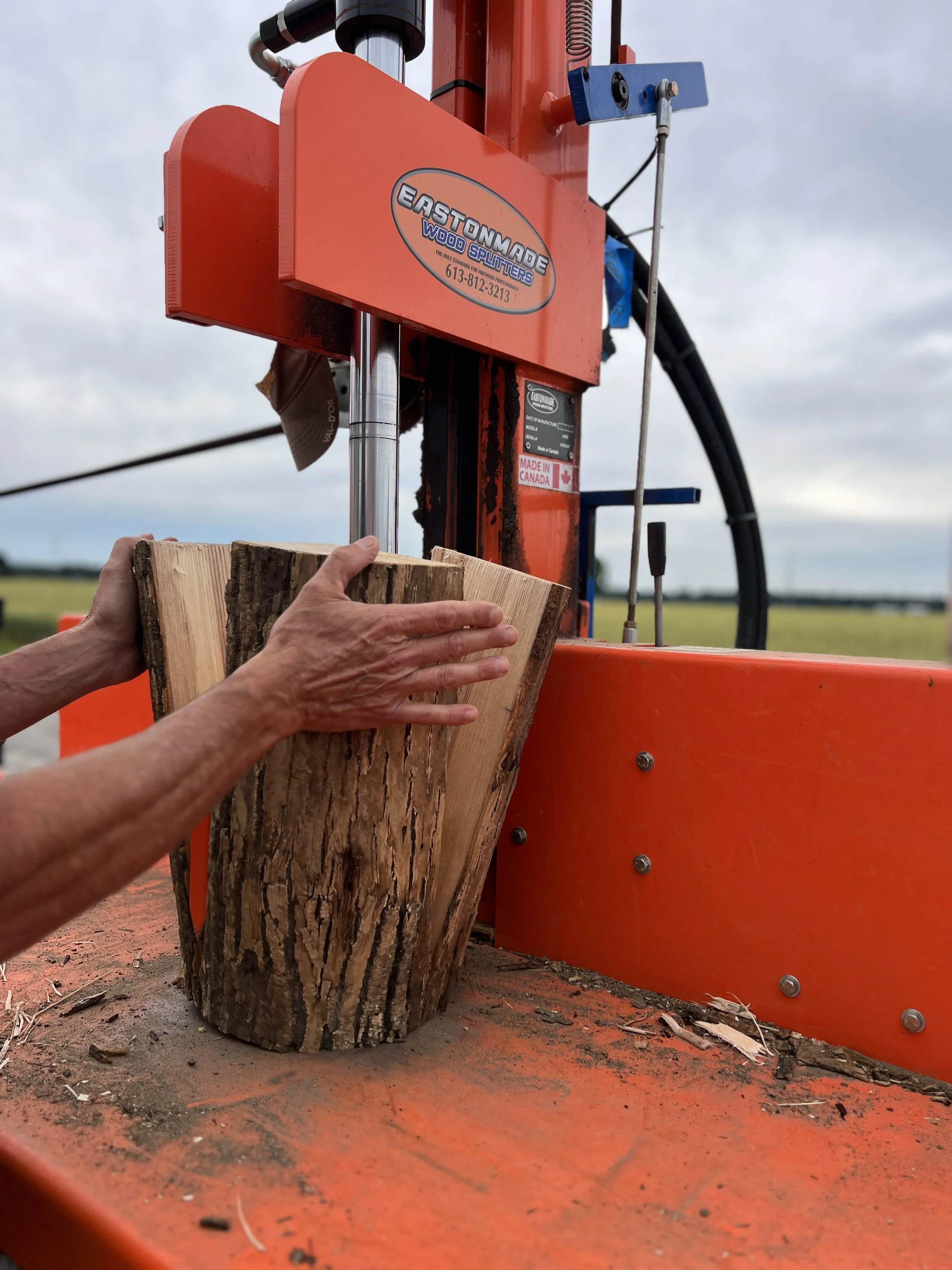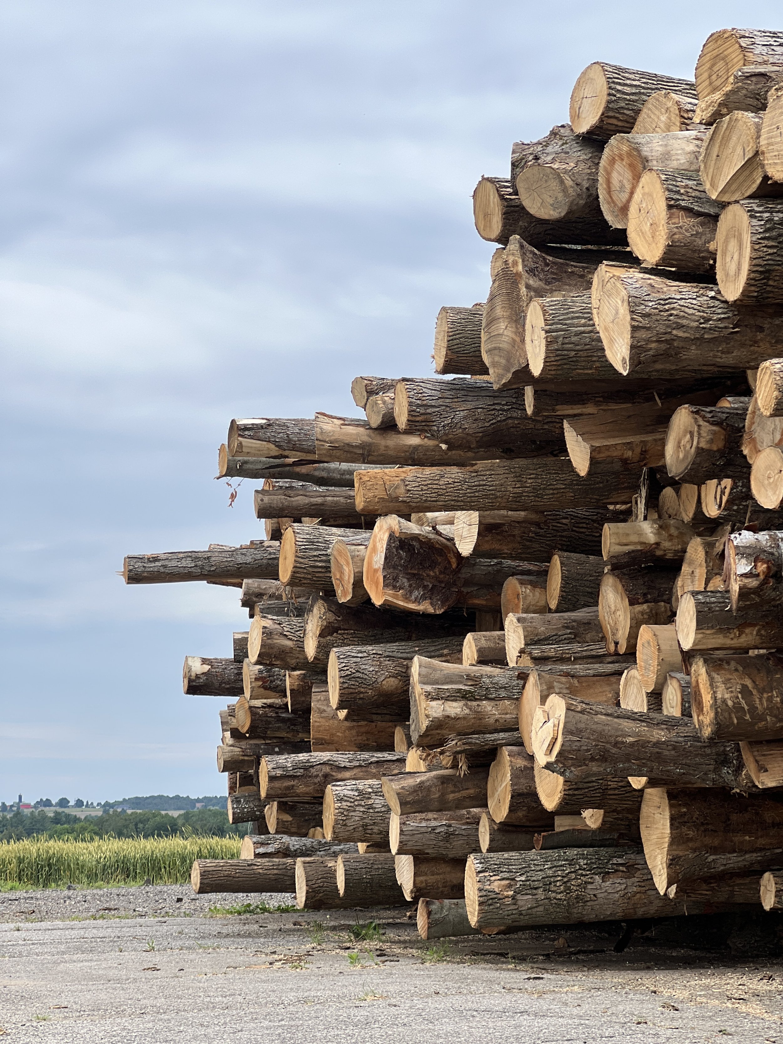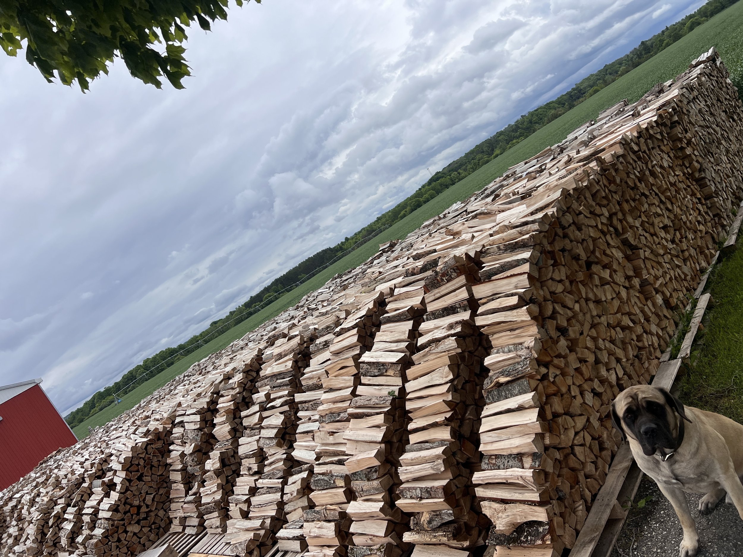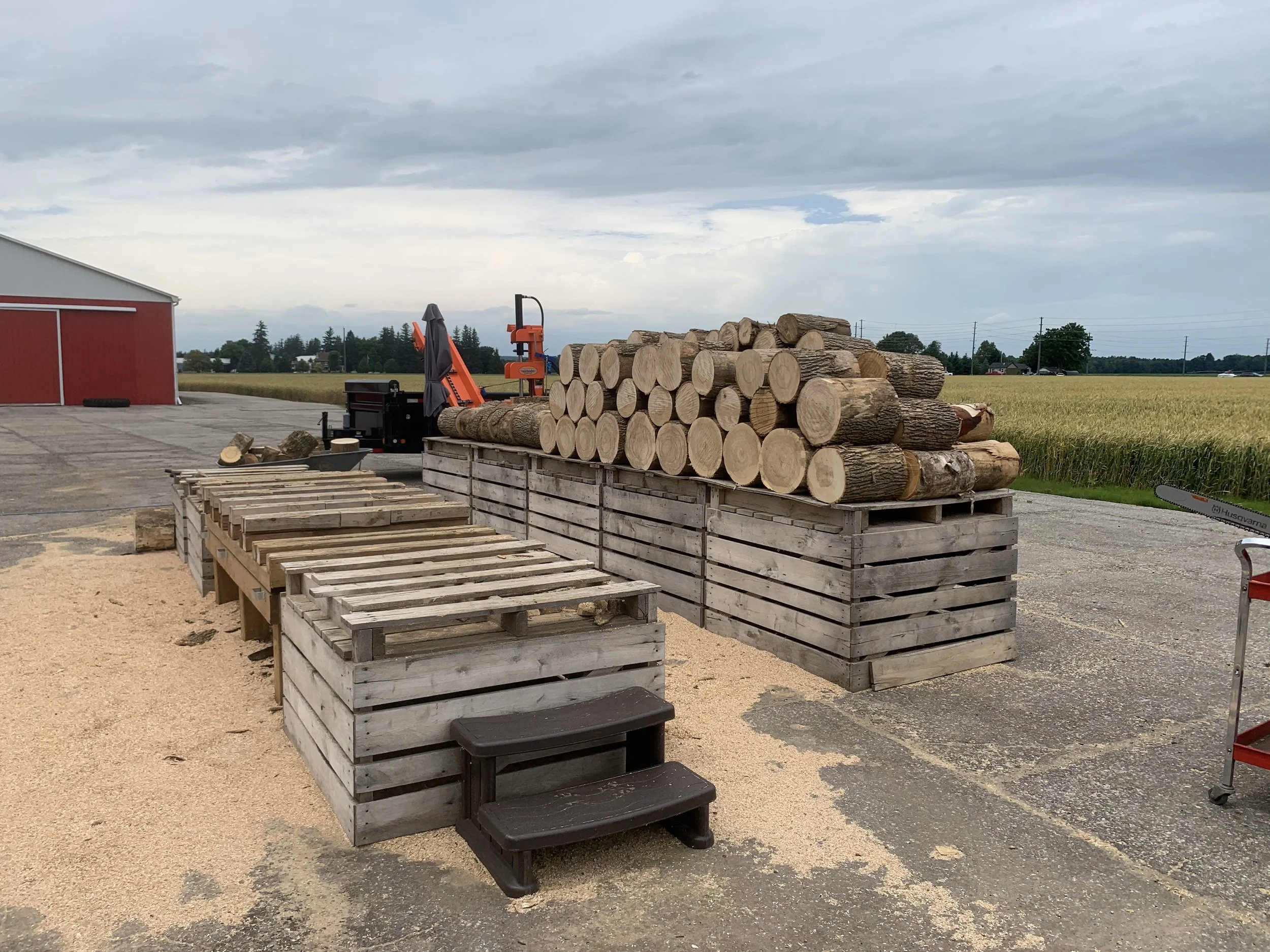 We buy wood poles that are 20 feet in length and process them down to premium firewood. Once the logs enter our yard the firewood never touches the ground. The logs are laid on runners to keep them off the ground.